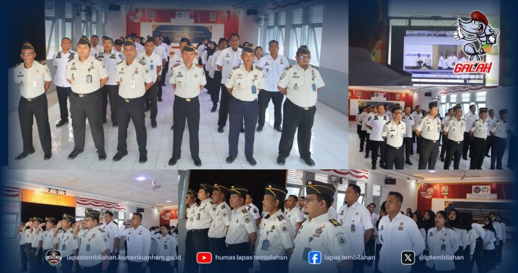 Lembaga Pemasyarakatan Kelas IIA Tembilahan melaksanakan apel bersama Kementerian Koordinator Bidang Hukum, Hak Asasi Manusia, dan Imigrasi dan Pemasyarakatan secara virtual melalui aplikasi Zoom Meeting, Senin (12/1/2026). Kegiatan yang berlangsung pukul 08.00 hingga 08.45 WIB tersebut diikuti oleh jajaran pegawai Lapas Tembilahan dan dipusatkan di Aula Dr. Sahardjo Lapas Tembilahan.