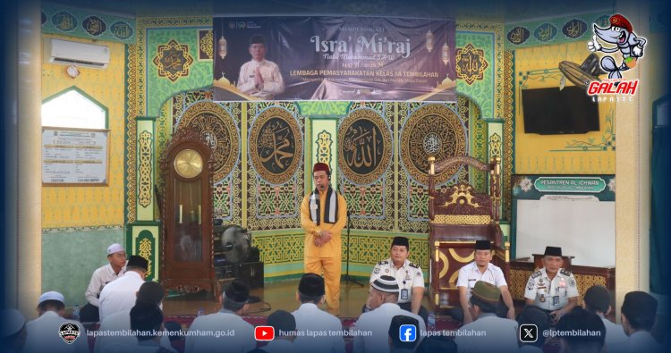 Lembaga Pemasyarakatan Kelas IIA Tembilahan melaksanakan peringatan Isra’ Mi’raj Nabi Muhammad SAW 1447 Hijriah pada Selasa, 13 Januari 2026, pukul 09.00 WIB. Kegiatan keagamaan ini dilaksanakan di Masjid Al-Ichwan Lapas Tembilahan dan diikuti oleh seluruh pegawai serta warga binaan dengan penuh khidmat dan tertib.