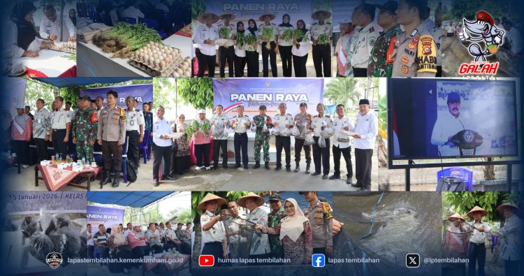 Kementerian Imigrasi dan Pemasyarakatan menyelenggarakan kegiatan Panen Raya secara nasional yang dilaksanakan pada Kamis, 15 Januari 2026. Kegiatan ini merupakan bagian dari upaya pembinaan kemandirian serta penguatan program ketahanan pangan di lingkungan pemasyarakatan. Pelaksanaan Panen Raya tersebut diikuti oleh seluruh unit pelaksana teknis pemasyarakatan di Indonesia secara daring, termasuk Lembaga Pemasyarakatan Kelas IIA Tembilahan.