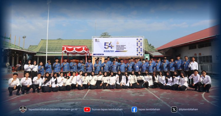 Tembilahan - Dalam rangka memperingati Hari Ulang Tahun Korps Pegawai Republik Indonesia (KORPRI) Ke-54, seluruh Aparatur Sipil Negara (ASN) di Lembaga Pemasyarakatan dan peserta magang dari kemenaker Kelas IIA Tembilahan melaksanakan Upacara Bendera pada Senin, 1 Desember 2025. Kegiatan ini di mulai dari pukul 08.00-09.00 WIB.