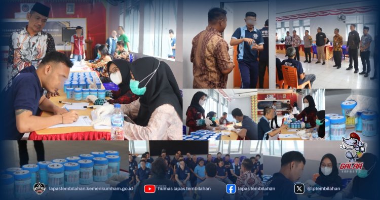 Lembaga Pemasyarakatan Kelas IIA Tembilahan melaksanakan kegiatan tes urine bagi seluruh warga binaan pemasyarakatan (WBP) yang Berstatus Narapidana tindak pidana penyalahgunaan narkotika dengan jumlah 635 orang warga binaan, sebagai langkah nyata dalam upaya pencegahan dan pemberantasan peredaran narkoba di lingkungan pemasyarakatan. Kegiatan ini dilaksanakan pada Jumat, 09 Januari 2026, bertempat di Aula Dr. Sahardjo Lapas Kelas IIA Tembilahan.